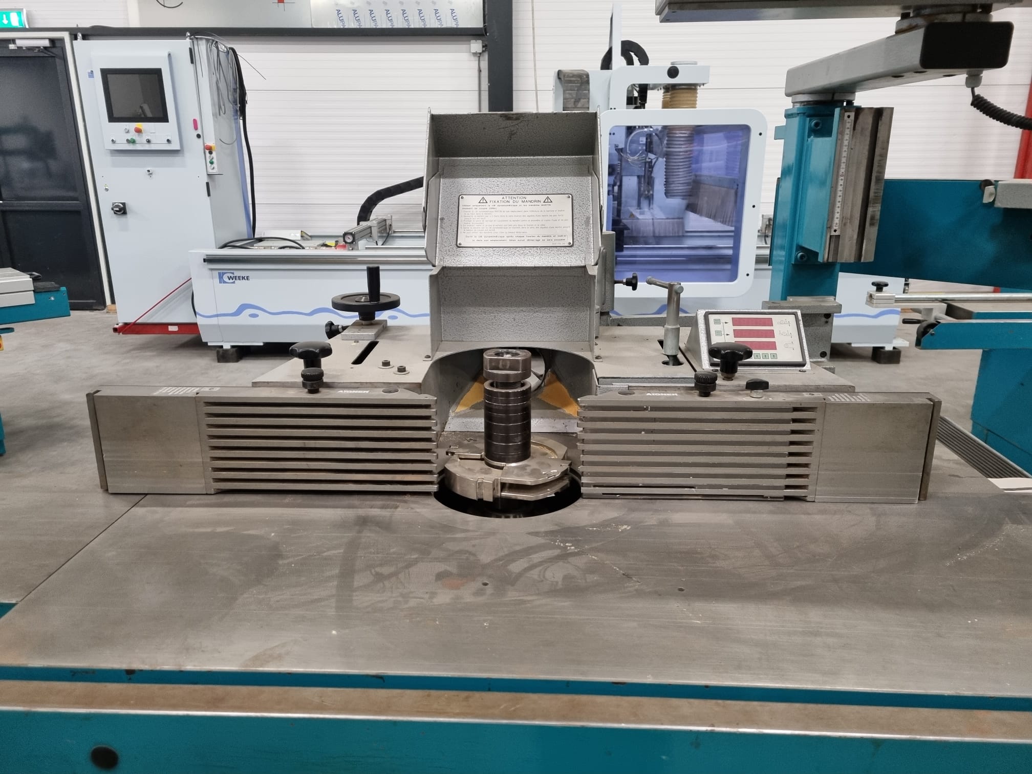 | 3. Freesaanslag met digitale maatweergave voor de verstelling van de invoergeleider ten opzichte van de uitvoergeleider | |